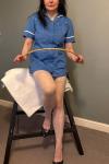 Whatever your personal tastes, the moment you enter my domain you will be overwhelmed by a sense of female power, the power of an ancient matriarchy now in the process of resurrection. It is a power that will be practically applied – in no uncertain terms – to you! I have an impressive array of paddles, tawses, hairbrushes, riding crops and plimsolls. I am an expert at using them all – in particular my spankings by hand can be eye-watering, and several of my devotees have said they are the hardest they have ever received. If you lean more to BDSM I cater for certain aspects, ball torture, pegging, needle play, watersport, sounding etc.